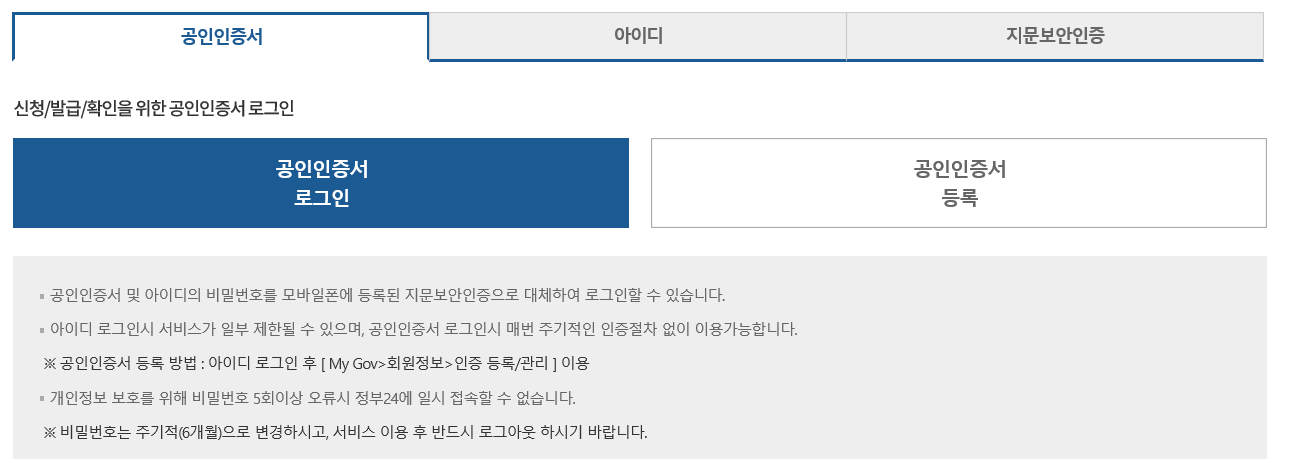 공인인증서로 로그인 시 민원신청, 열람, 발급 등의 서비스를 이용하실 때 마다 공인인증서 확인을 하는 번거로움 없이 편리하게 사이트를 이용 할 수 있으니 참고하시면 될 듯 합니다.