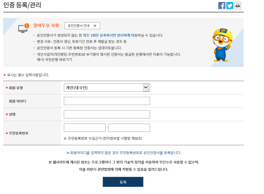 3. 회원가입 후 공인인증서를 등록해주셔야 합니다.