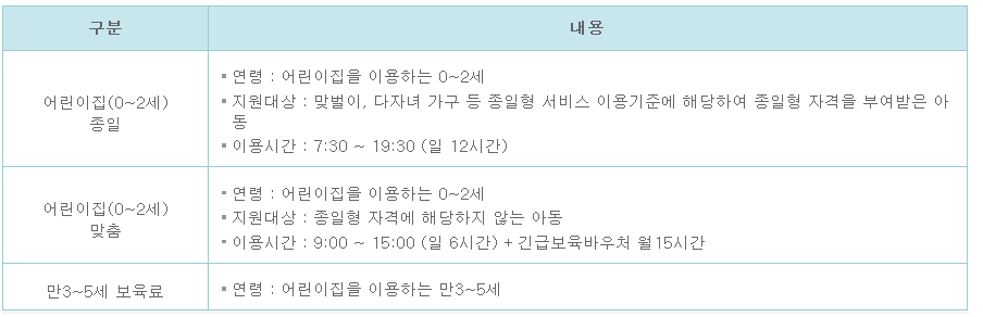 - 가정, 농어촌, 장애아동양육수당을 지원받고 있는 아동은 제외대상입니다.