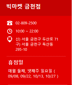 빅마켓 9월 휴무일에 대해서 알아봤습니다.