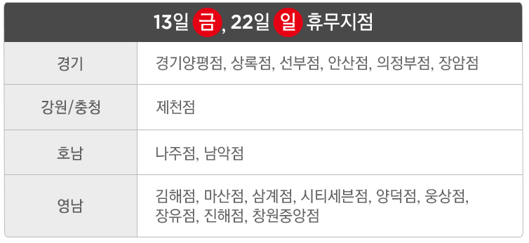 9월 13일, 28일 휴무점