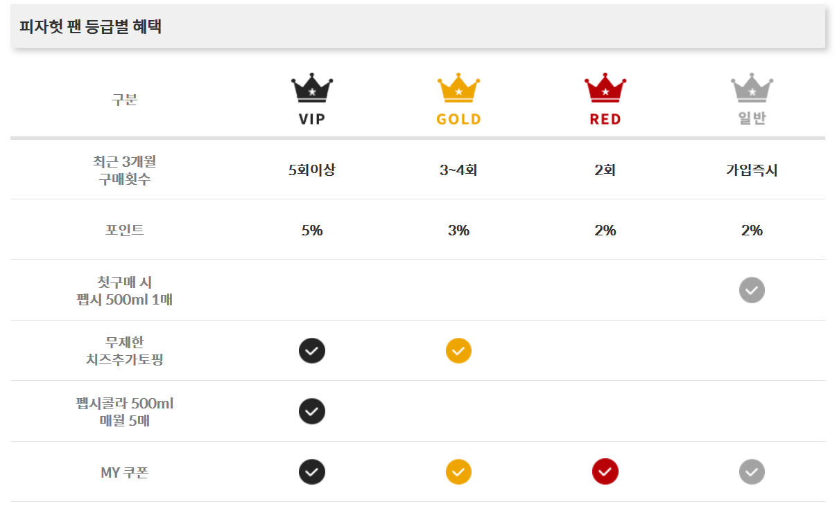 - 피자 구매 금액의 15%할인 (일반 등급)