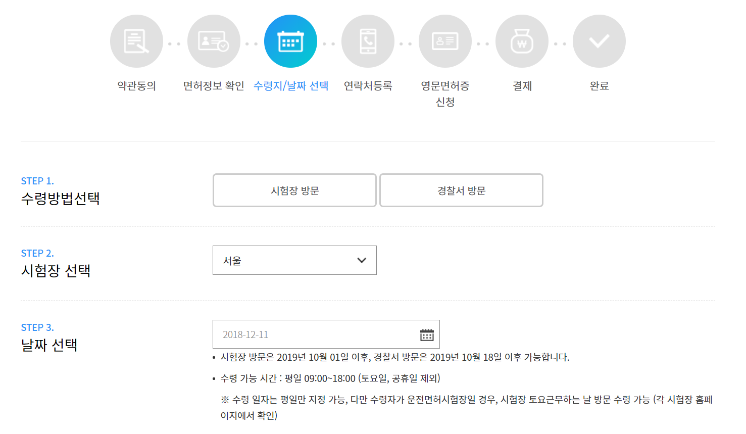 시험장 또는 경찰서 방문 수령이 가능합니다.