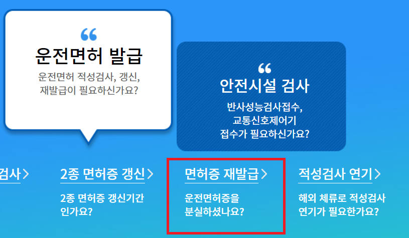 3. 아래 하단에 "면허증 재발급" 을 클릭해주세요