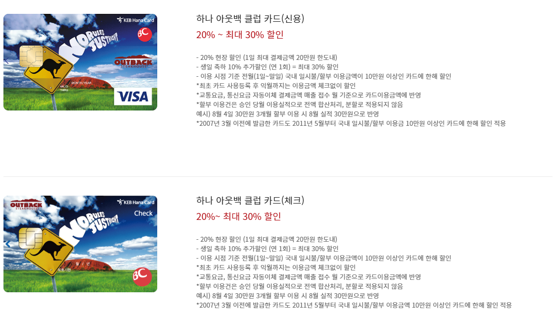 그래서 오늘은 아웃백 통신사, 신용카드, 멤버쉽 할인에 대해서 내용 정리를 해봤습니다.