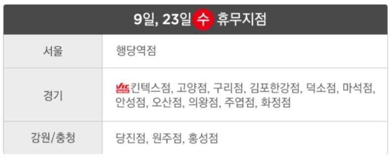 롯데마트 10월 휴무일 (9일, 23일 수 휴무 지점)