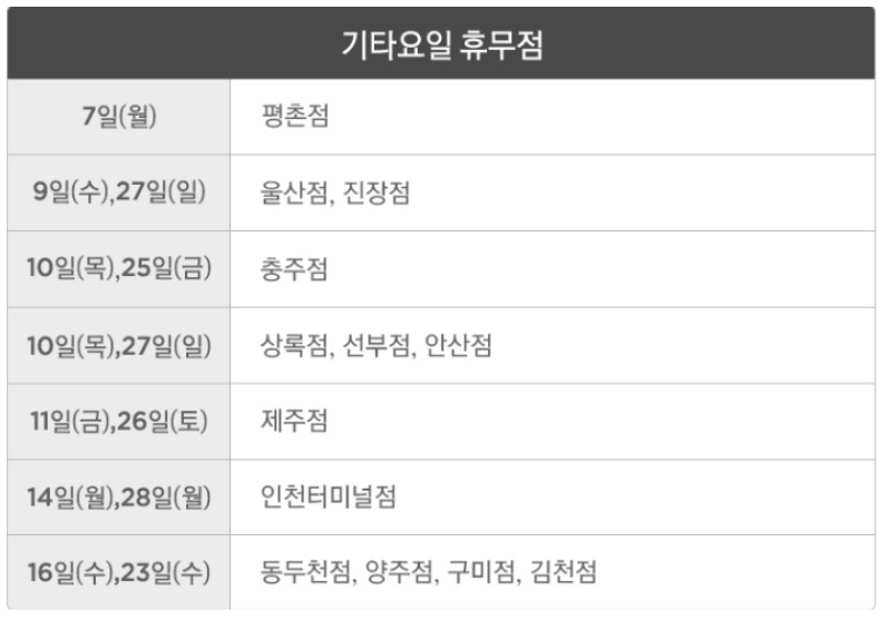 롯데마트 10월 휴무일 (기타요일 휴무점)