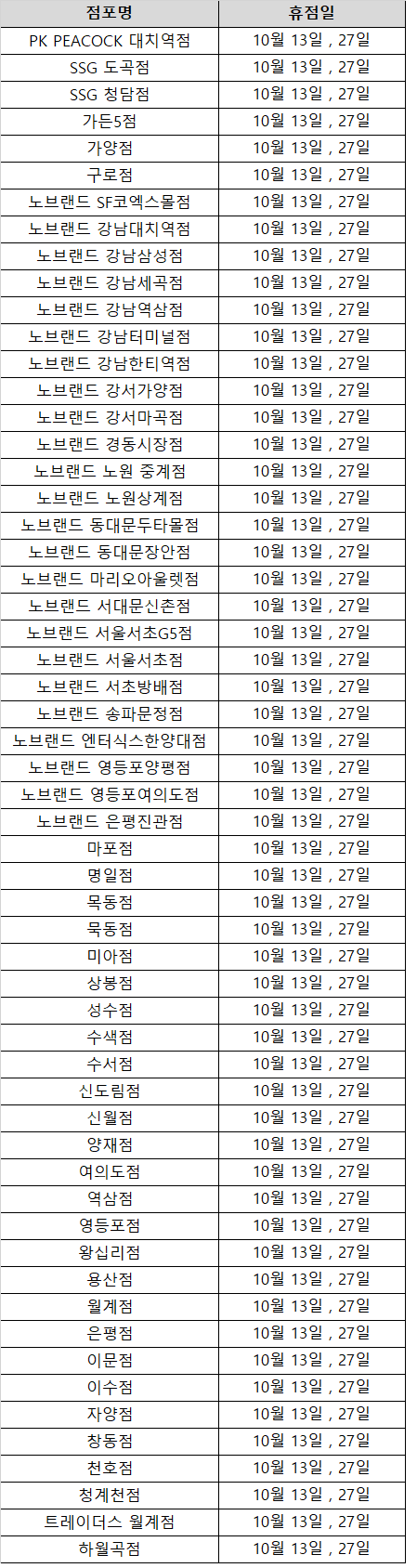 이마트 10월 휴무일에 대해서 알아보겠습니다.