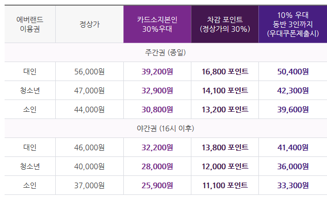 에버랜드 입장권, 할인카드, 통신사할인 정리