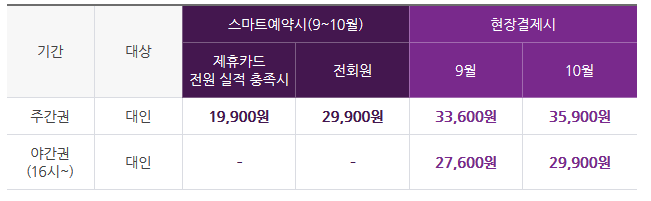 - 신분증, 서류 확인이 필요한 경우 현장매표소에서만 구입 가능합니다.