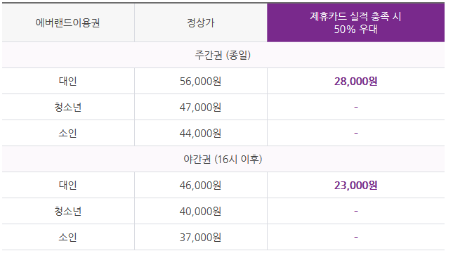 에버랜드 입장권가격, 할인카드, 통신사할인에 대해서 궁금해하시는 분들을 위하여
