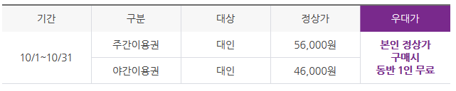 본인 최대 60% 우대 + 동반 3인 최대 35 % 우대 가능