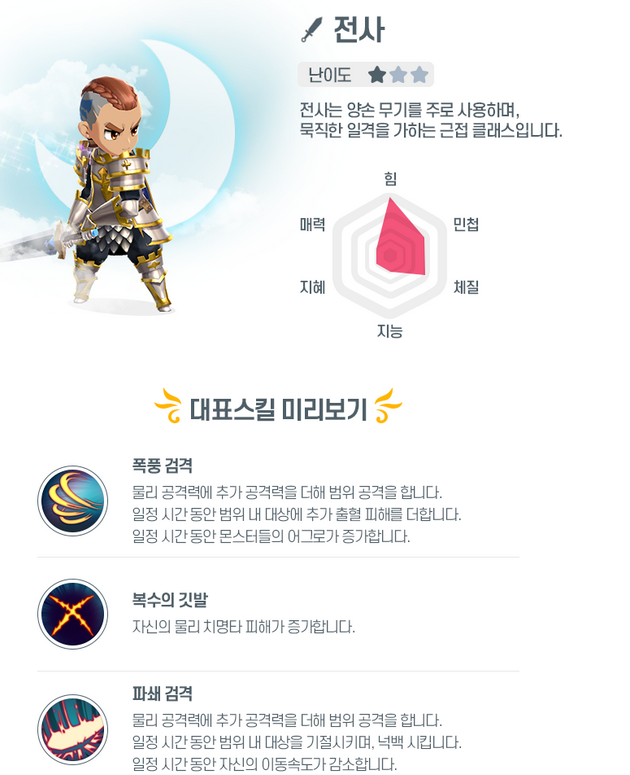 전사는 가장 난이도가 낮은 캐릭터입니다.