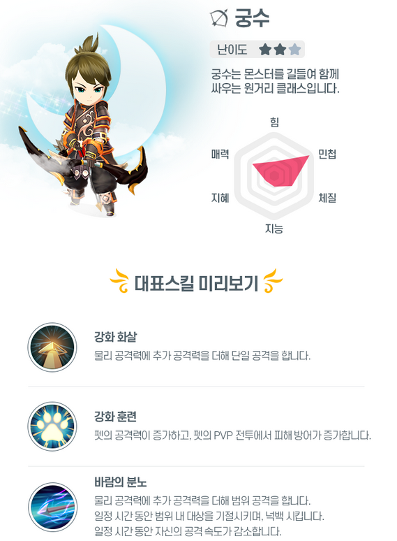 사냥이 무난하고 원거리 사냥을 하는 궁수입니다.