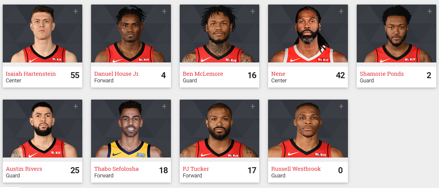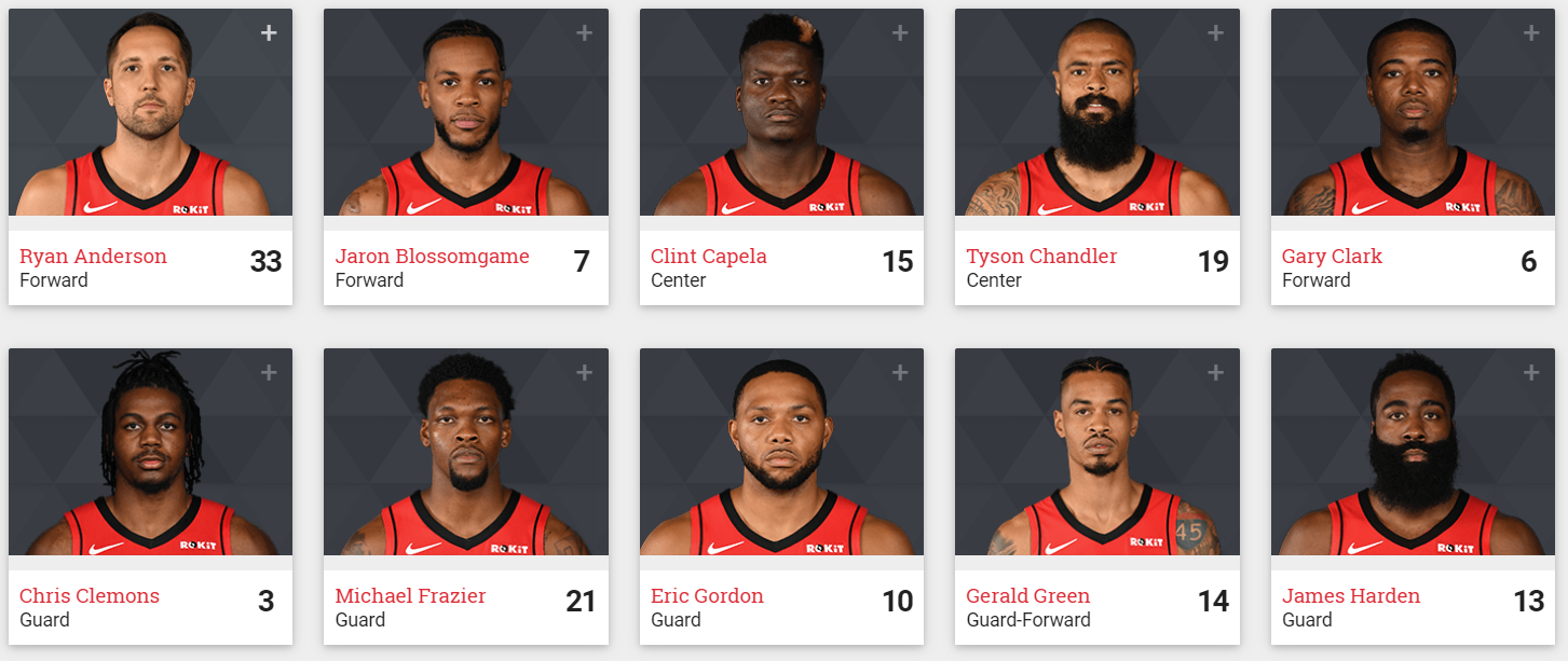 NBA 휴스턴로케츠 선수 주전, 라인업