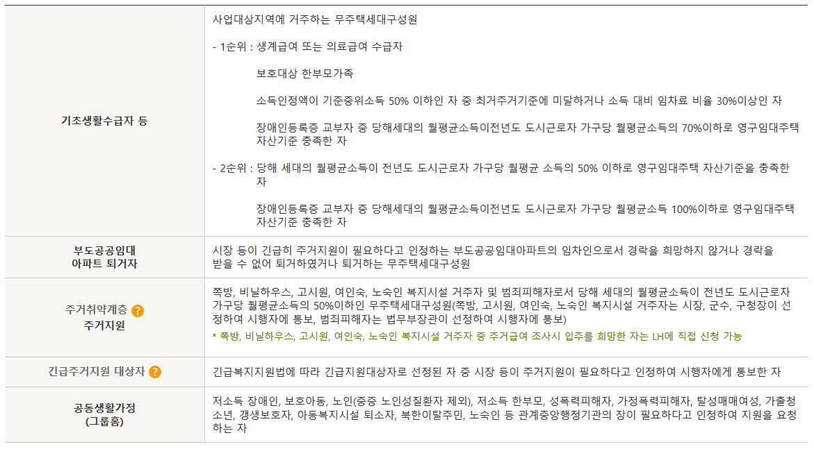 - 긴급주거지원 대상자