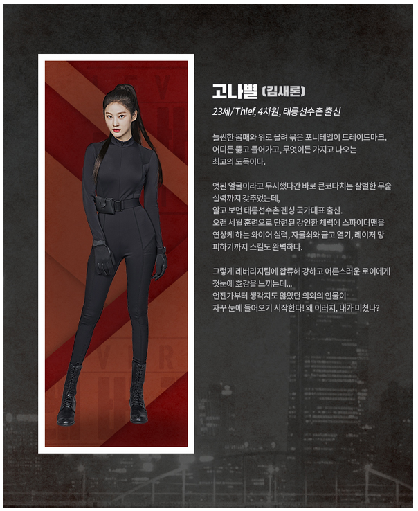 4차원이며 태릉선수촌출신이고 최고의 피지컬과 스킬을 자랑하는 태릉선수촌 출신 탑클래스 도둑입니다.