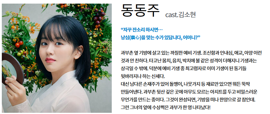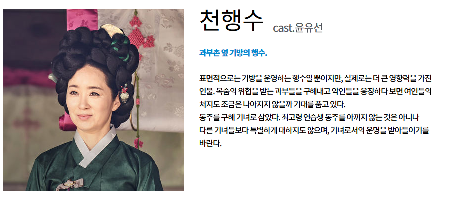 과부촌 옆 기방에 살고있는 까칠한 예비 기생입니다.