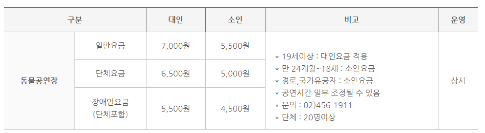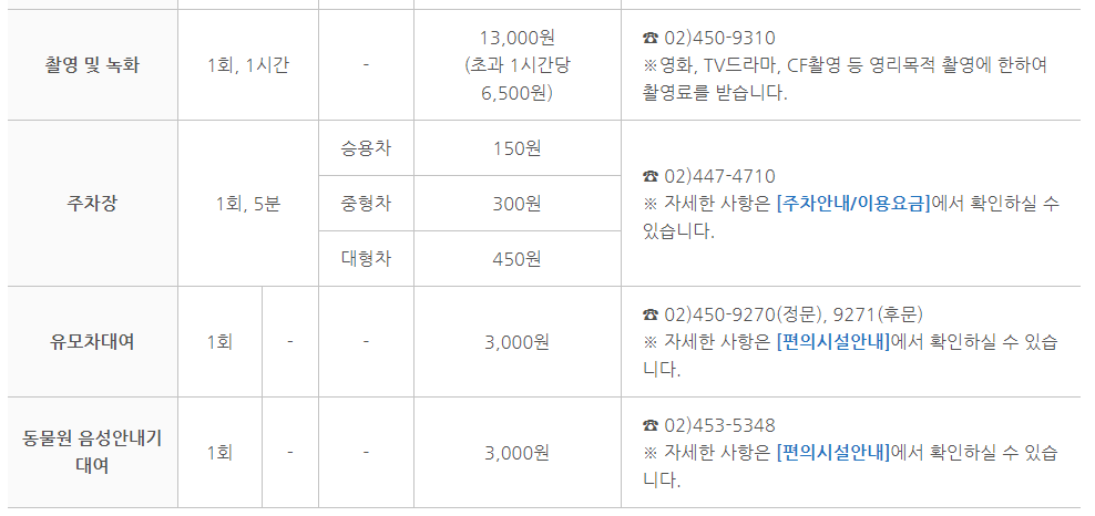 서울어린이대공원 입장권 및 동물원 입장료, 주차시설에 대한 내용 참고하셔서 즐거운 나들이 되시길 바랍니다.