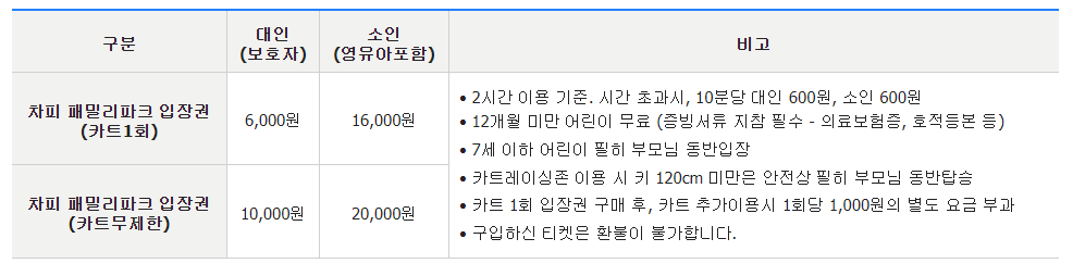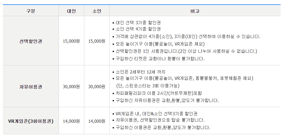 1. 월미도 월미테마파크 이용요금