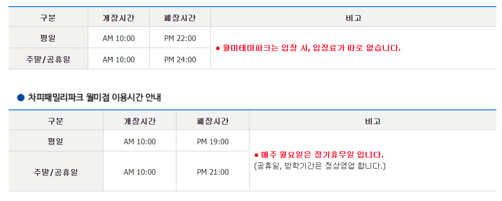 2. 월미도 월미테마파크 운영시간