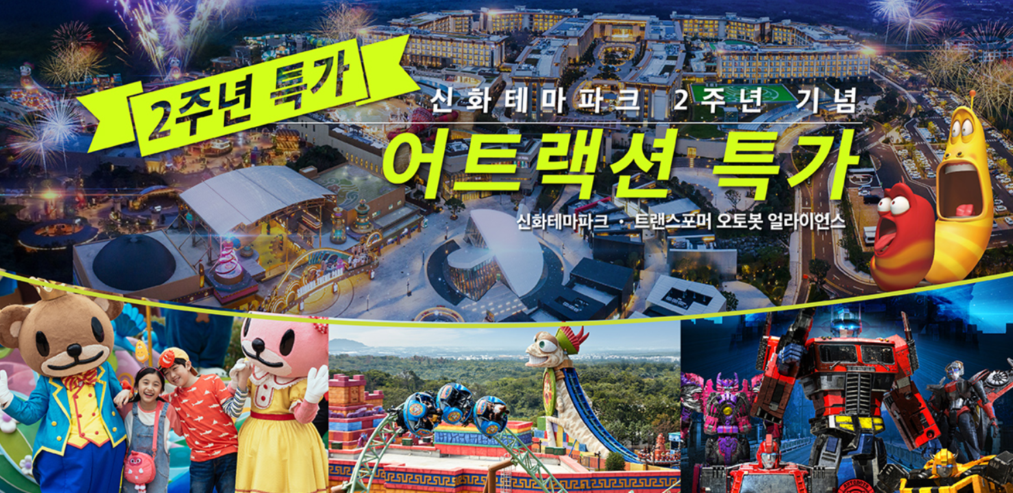 인기 캐릭터 '라바'를 탄생시킨 글로벌 3D 애니메이션 제작사, 투바앤의 다양한 캐릭터와 스토리가 가득한 신화테마파크는 15가지 짜릿한 놀이기구와 어트랙션, VR체험, 신나는 퍼레이드까지 즐길 수 있다고 합니다.