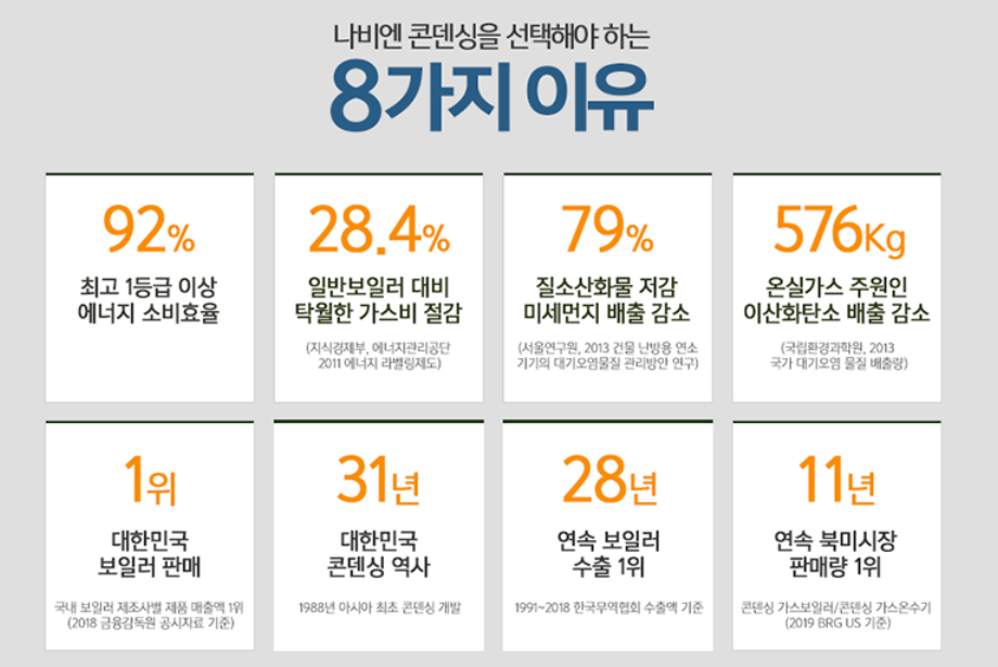 친환경 콘덴싱 보일러는 이미 지구 온난화의 주범인 이산화탄소 발생을 줄이며 환경 개선에 기여 할 수 있도록 해외에서는 이미 보편화가 되어 있다고 합니다.