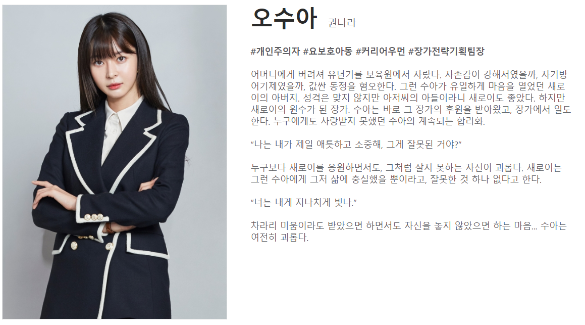 - 커리어우먼의 성격이자 장가전략 기회팀장입니다.