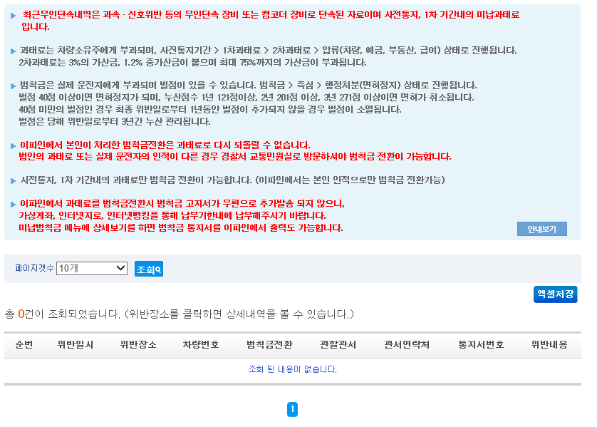 - 미납내역조회 -> 최근무인단속내역에 접속하기