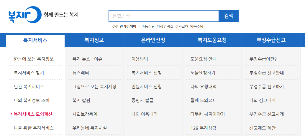 복지로 사이트 접속 후 복지서비스 -> 복지서비스 모의계산에서 확인이 가능합니다.