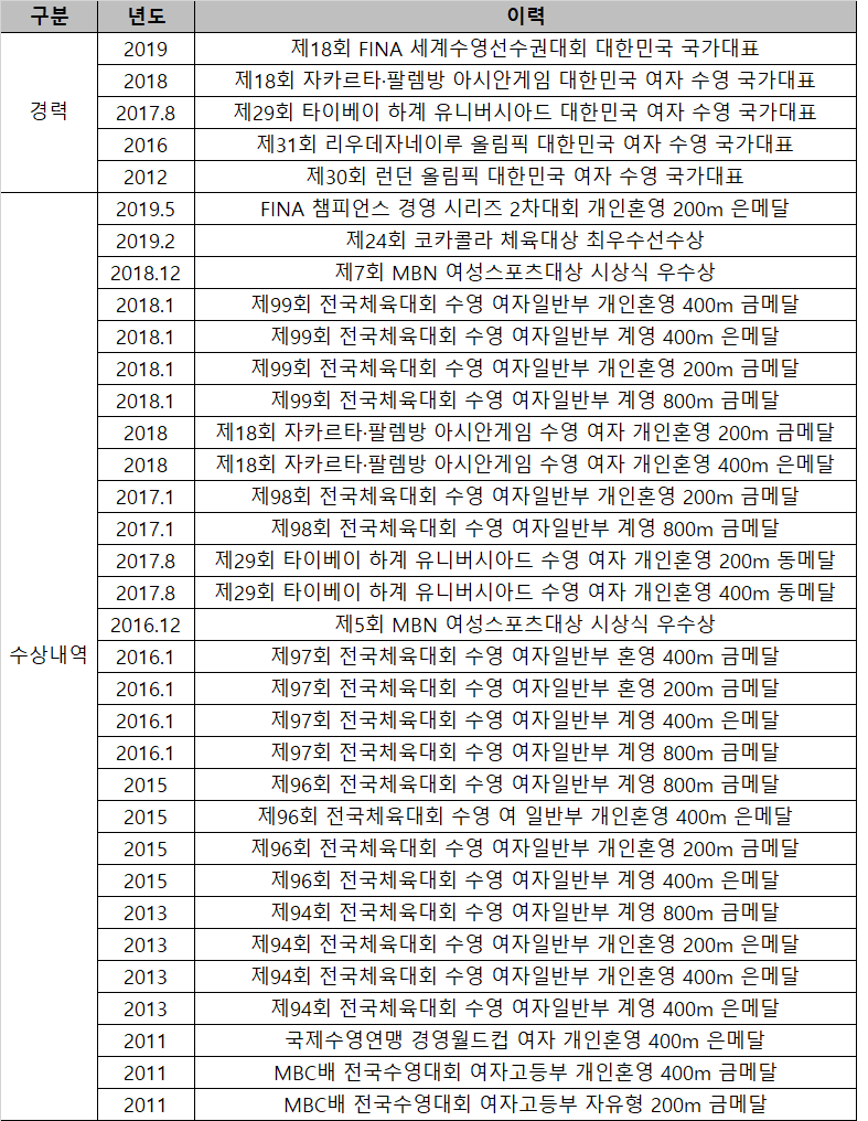김서영 수영선수 경력 및 수상내역