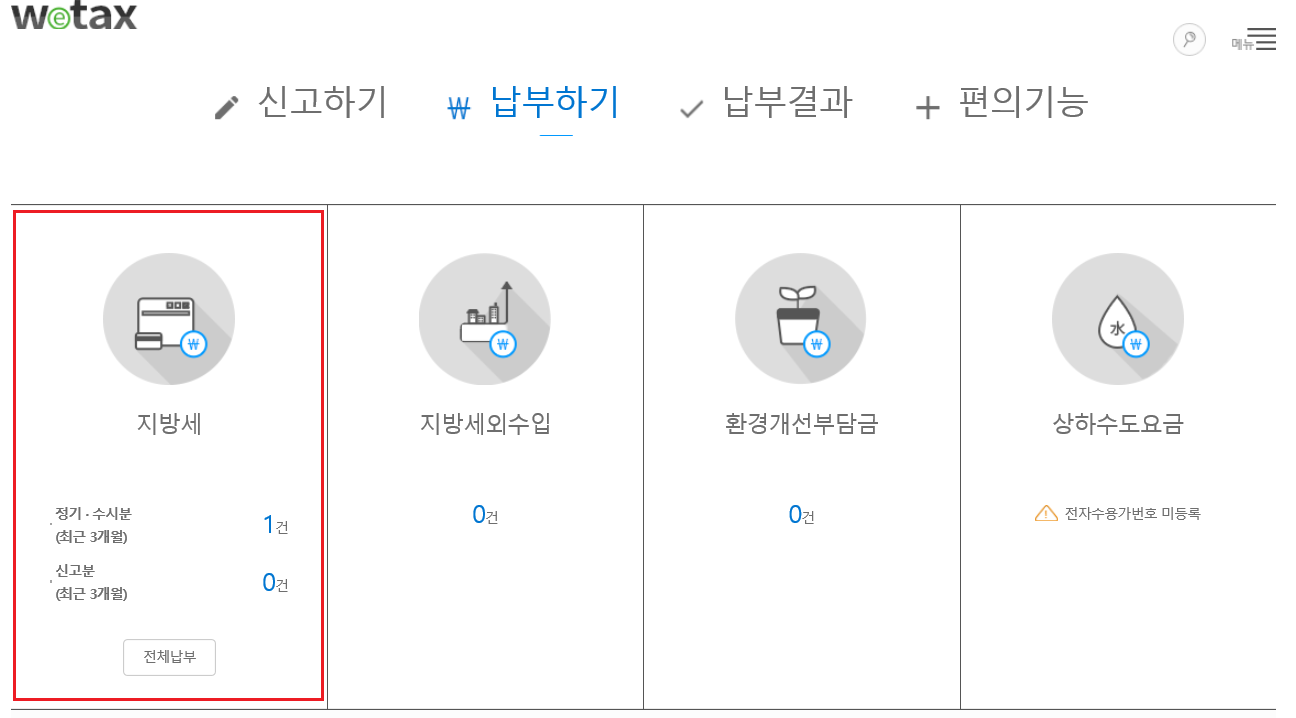 3. 납부하기 -> 지방세 클릭해주세요