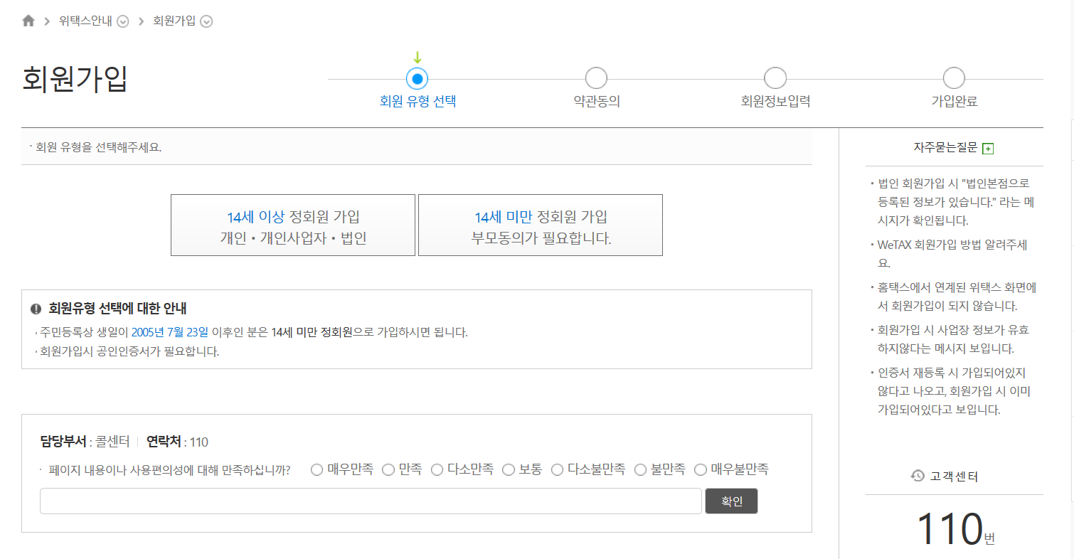 1. 위택스 사이트 접속 후 회원가입하기