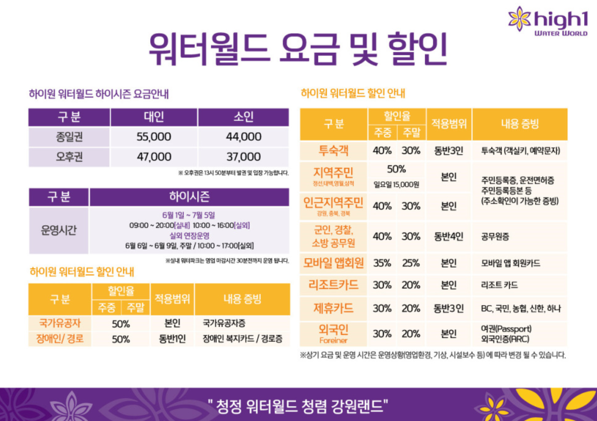 지금까지 하이원 워터월드 입장권, 운영시간, 입장료, 할인에 대해서 알아봤습니다.
