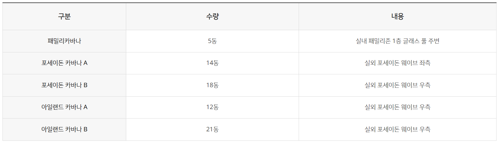 유료스파, 바데풀, 패밀리존, 아일랜드존, 포세이돈존 등등 다양한 놀이시설이 많이있는게 눈에 확 띄네요