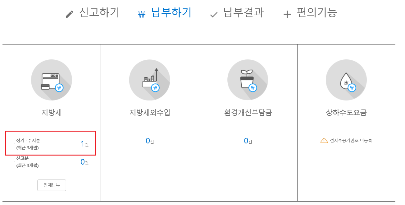 2. 납부하기 카테고리 -> 지방세를 클릭해주세요
