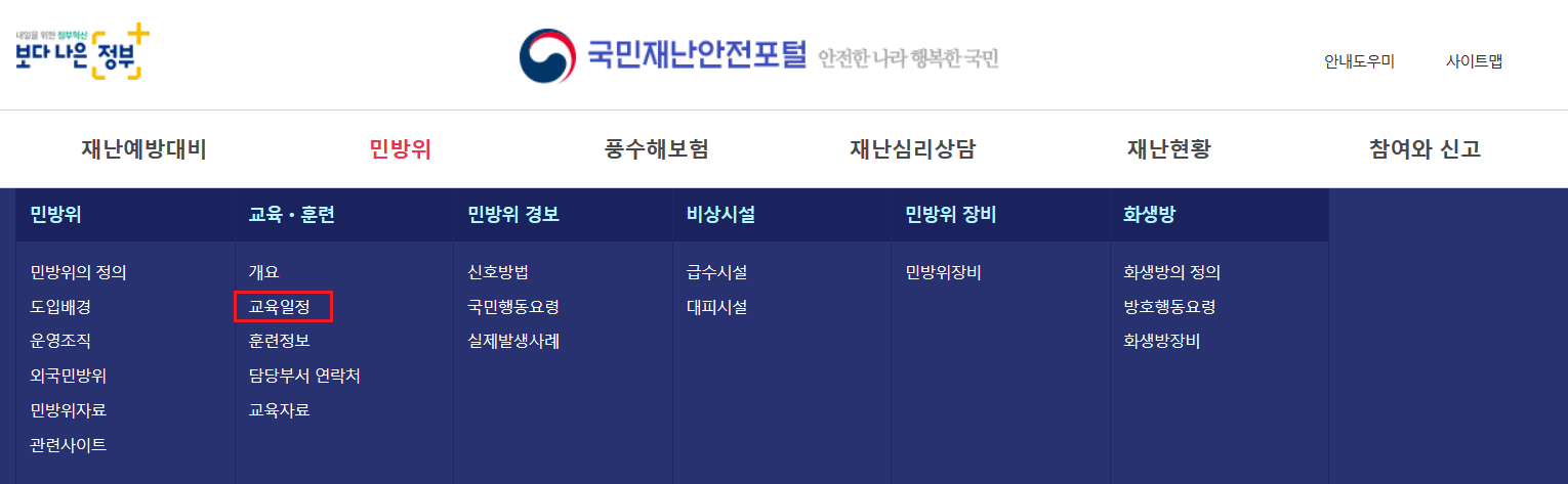 2. 민방위 카테고리 -> 교육일정을 확인해주세요