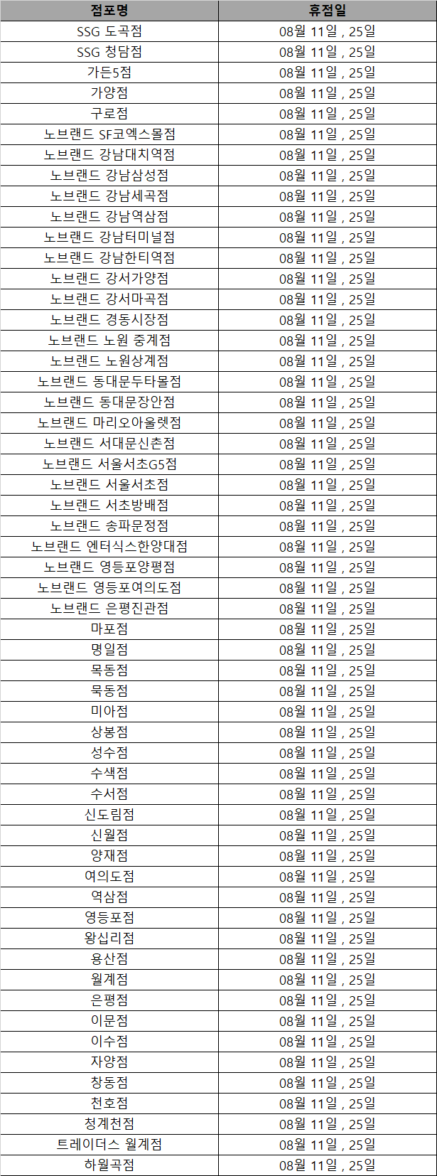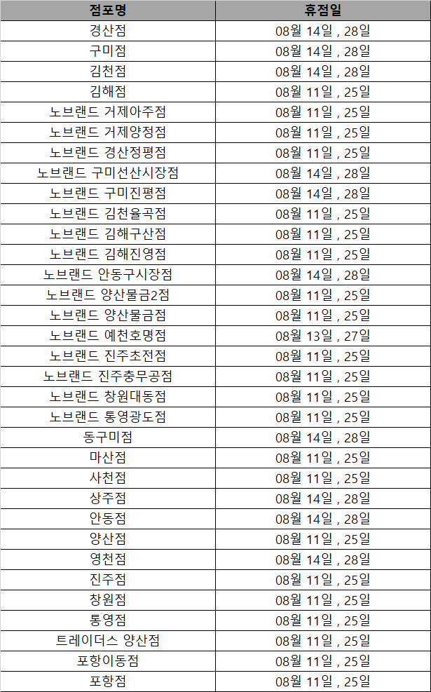 이마트 8월 휴무일에 대해서 미리 체크하고 가시는 걸 권장드립니다.